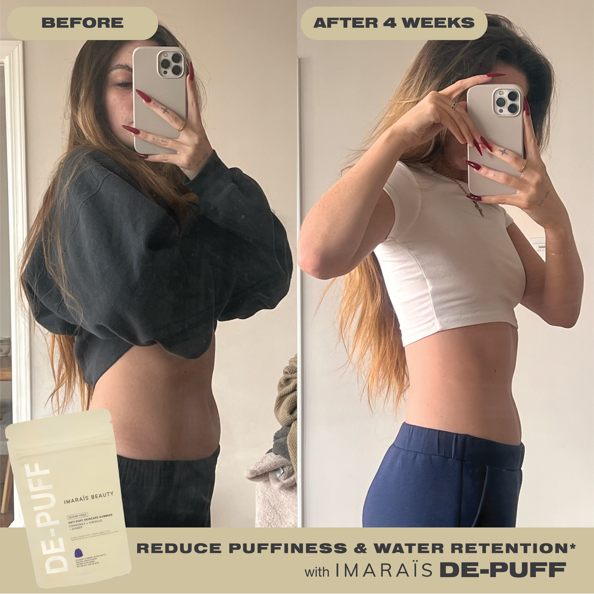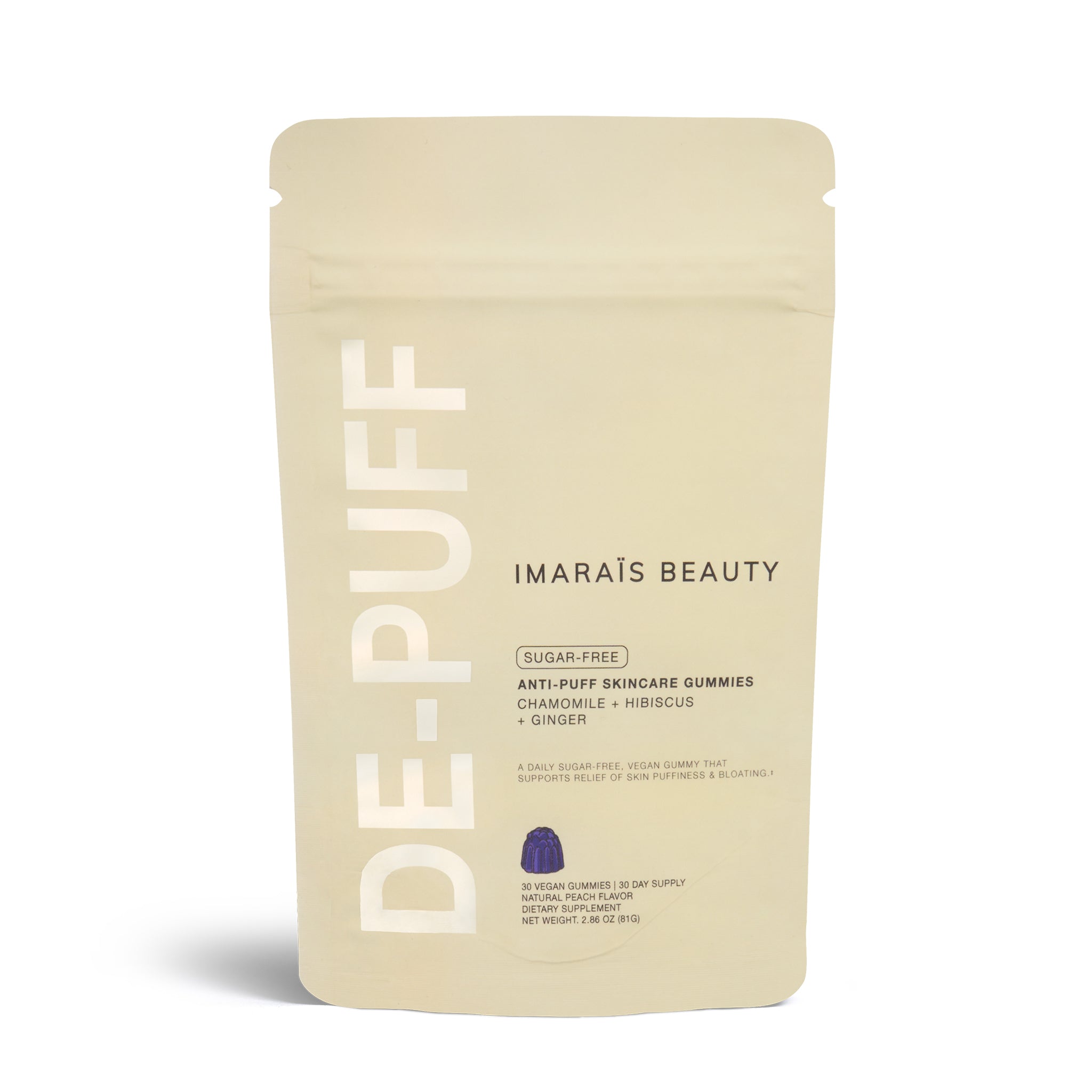 Soothe and refresh puffy, tired skin with De-Puff by IMARAÏS, a clean, plant-powered gummy that supports skin balance and calm from within.