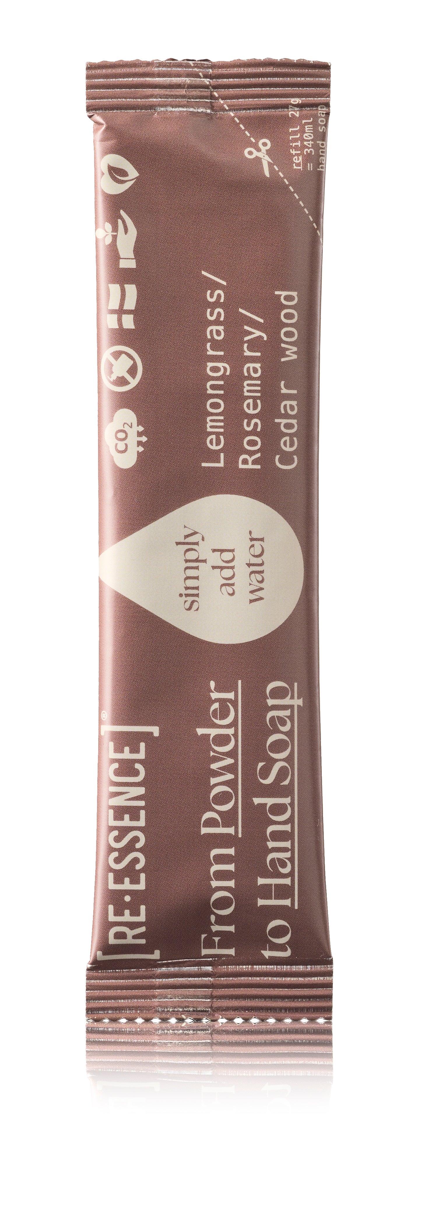 Re:Essence powder-to-soap refill pack makes 3 x 340 ml of gentle and nourishing hand soap of 98% natural origin.