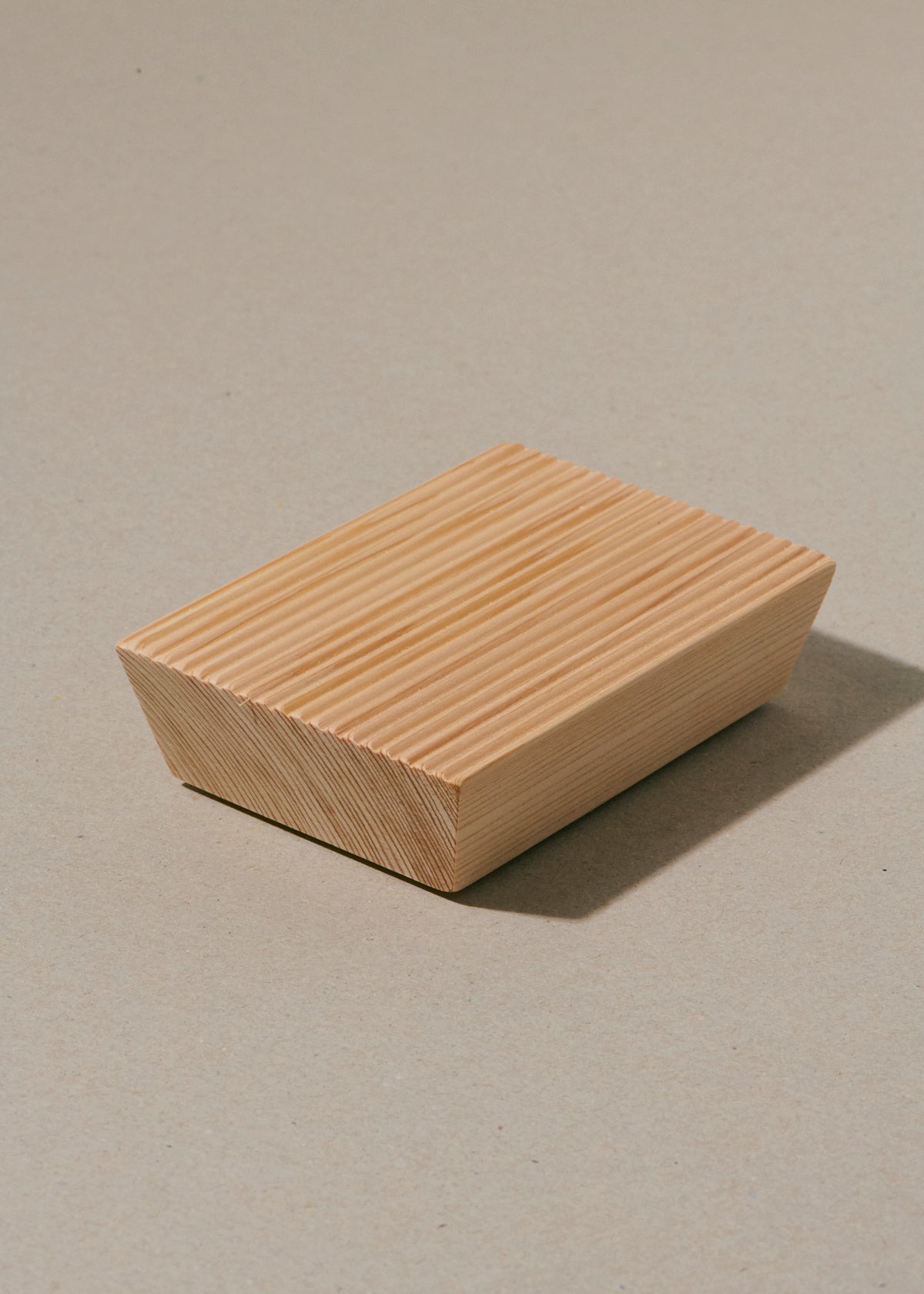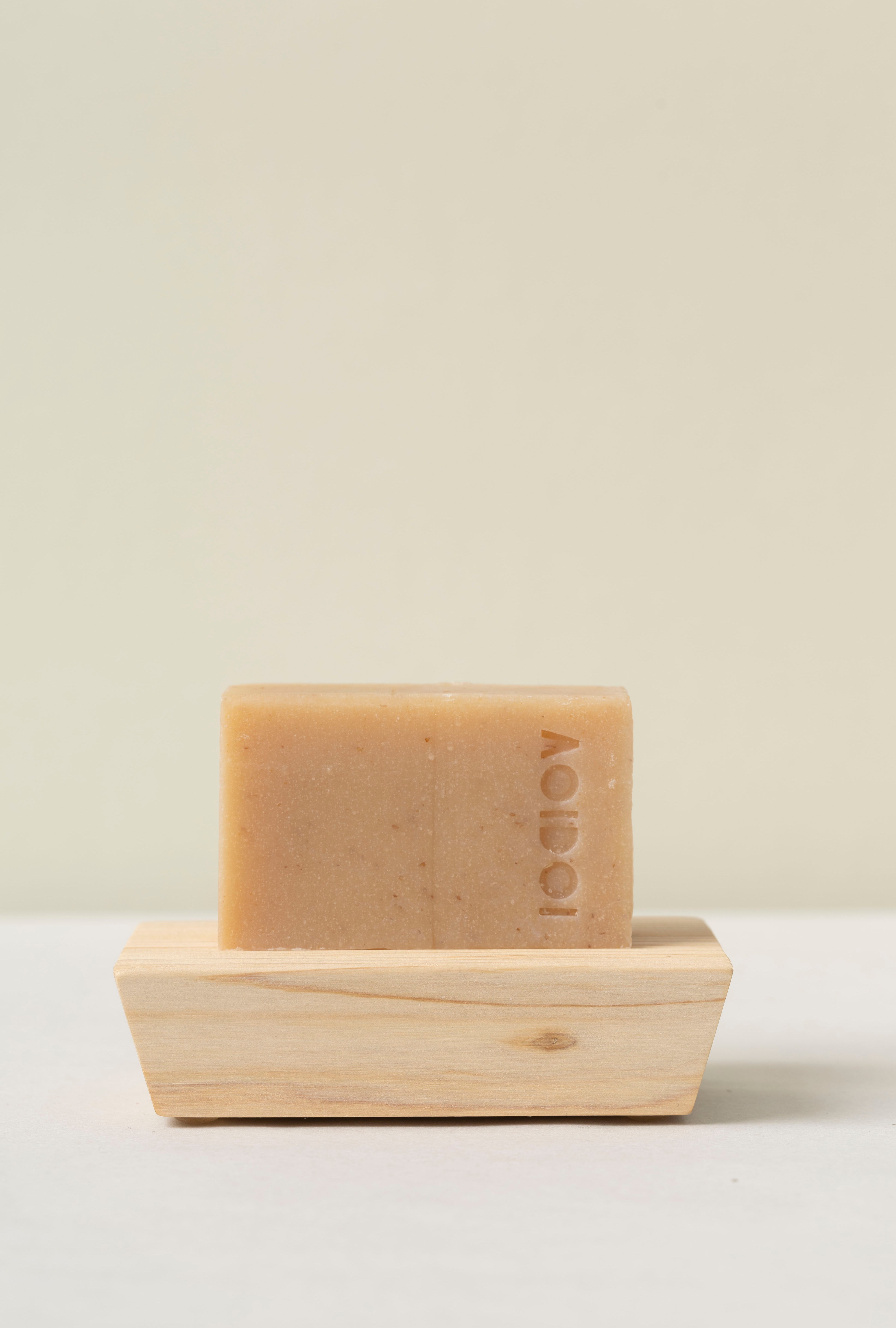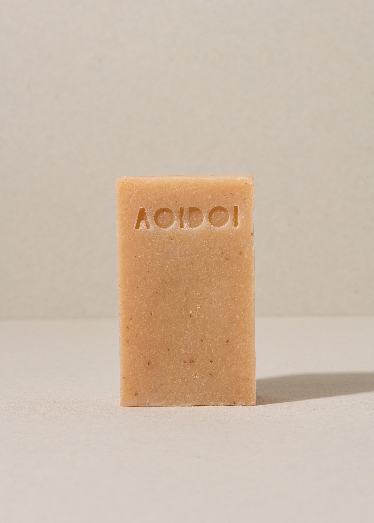 Craft: COLD-PROCESSED. SLOW-CURED. HANDMADE. These soaps are created using the traditional cold process method, which preserves the full potency of botanical oils and butters. Unlike industrial soaps that rely on heat and synthetic hardeners for quick production, these are cured naturally over several weeks, resulting in a denser, longer-lasting bar with a rich, nourishing lather. Each bar is poured, cut, and stamped by hand in small batches, with subtle variations that reflect the artisanal nature of every piece. Each bar is wrapped in recycled paper, letterpress printed in Copenhagen using hand-mixed inks on a vintage Heidelberg press. The packaging is designed to be as tactile and intentional as the product itself — emphasising texture, craftsmanship, and a quiet visual language that reflects AOIDOI’s commitment to sustainability and material presence.