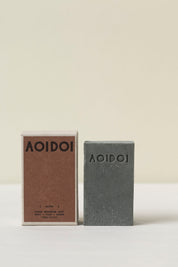 Craft: COLD-PROCESSED. SLOW-CURED. HANDMADE. These soaps are created using the traditional cold process method, which preserves the full potency of botanical oils and butters. Unlike industrial soaps that rely on heat and synthetic hardeners for quick production, these are cured naturally over several weeks, resulting in a denser, longer-lasting bar with a rich, nourishing lather. Each bar is poured, cut, and stamped by hand in small batches, with subtle variations that reflect the artisanal nature of every piece. Each bar is wrapped in recycled paper, letterpress printed in Copenhagen using hand-mixed inks on a vintage Heidelberg press. The packaging is designed to be as tactile and intentional as the product itself — emphasising texture, craftsmanship, and a quiet visual language that reflects AOIDOI’s commitment to sustainability and material presence.