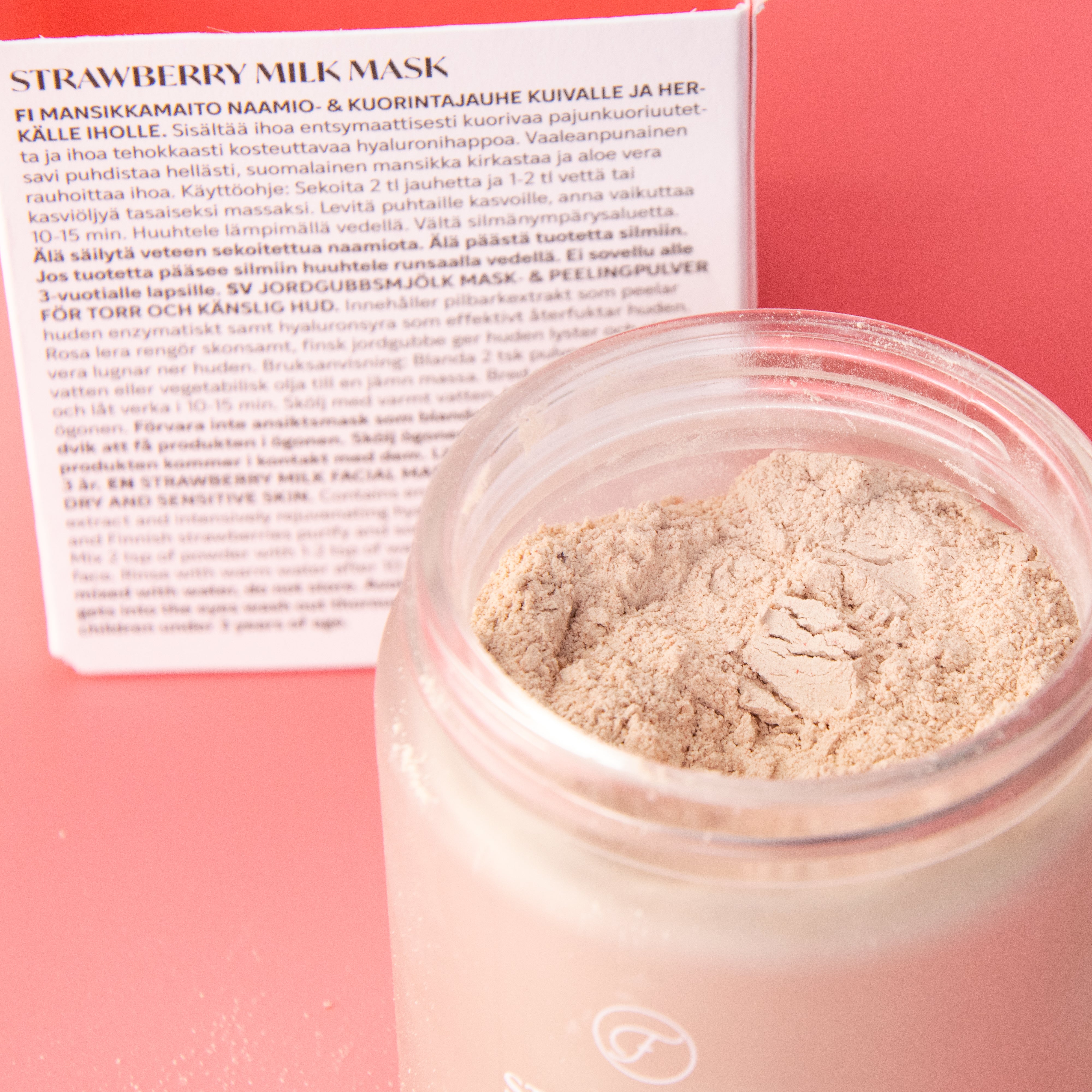 Strawberry Milk Mask är en 2-i-1 ansiktsmask & peeling för torr och känslig hud