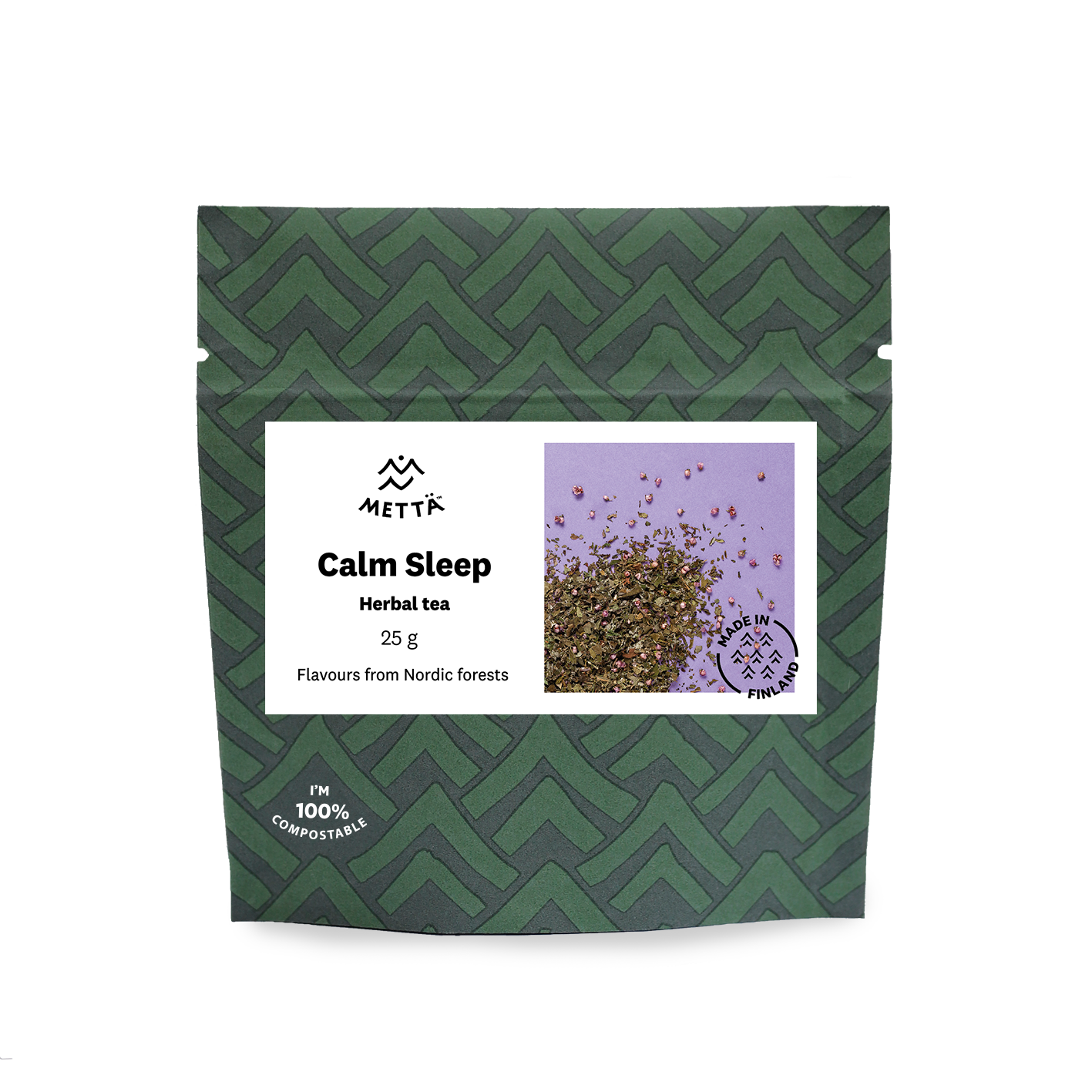 Lugn Sömn : Örtte som är en noggrant utvald blandning av finska örter, såsom eldgräsblad, hallonblad och ljungblomma, som traditionellt har använts i Finland för sina lugnande och avslappnande effekter. Att njuta av en kopp te på kvällen är ett särskilt avkopplande sätt att släppa taget om dagen och förbereda kroppen och sinnet för en lugn natts sömn. Naturligt koffeinfri.