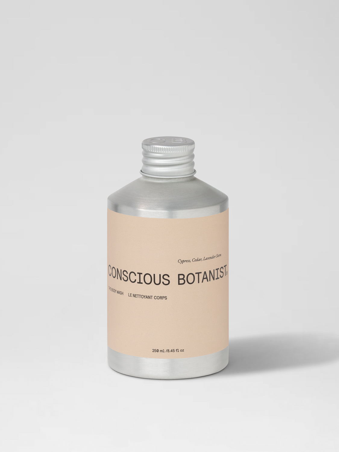 250ml | 8.45 fl. oz. Aluminium bottle with screw cap, re-useable pump available to purchase if desired.