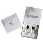 2 x 10 ml metallrulle, i glasflaska. Lyxig presentförpackning.