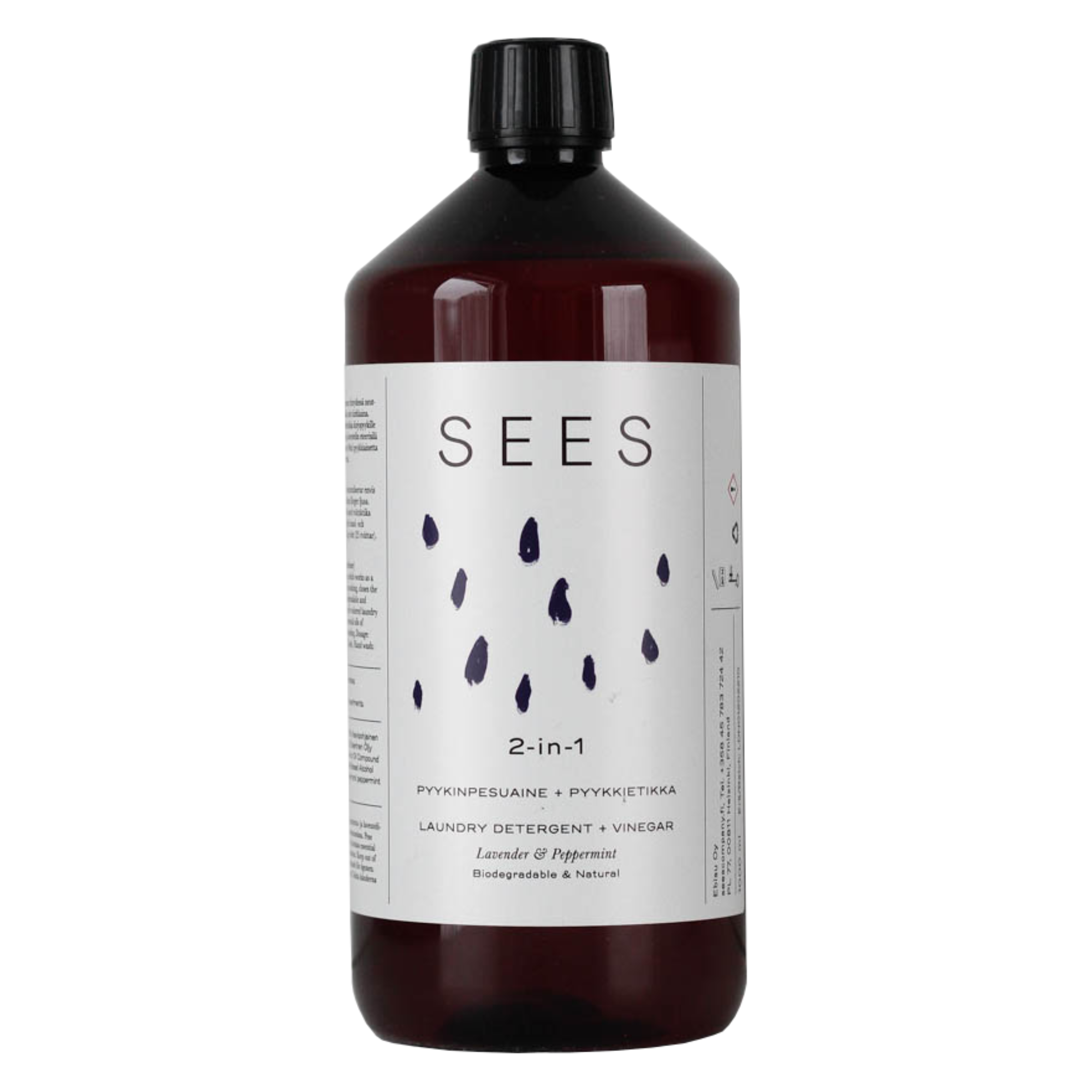 SEES 2 in 1 tvättprodukt är ett tvättmedel med två produkter i en flaska. Tvättättika är redan tillsatt i tvättmedlet, vilket neutraliserar envis lukt under tvätt, stänger fibrerna i textilen och håller färgerna ljusa.