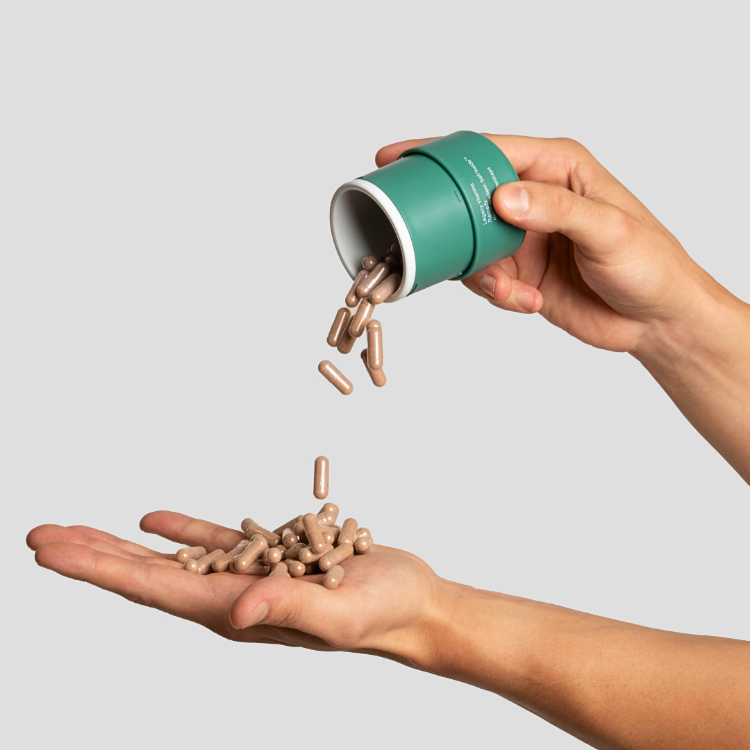 En bekväm daglig dos av tre kapslar som innehåller fruktextrakt, adaptogener och kliniskt bevisade ingredienser, som tros bidra till aspekter som återhämtning, immunitet och en känsla av föryngring.